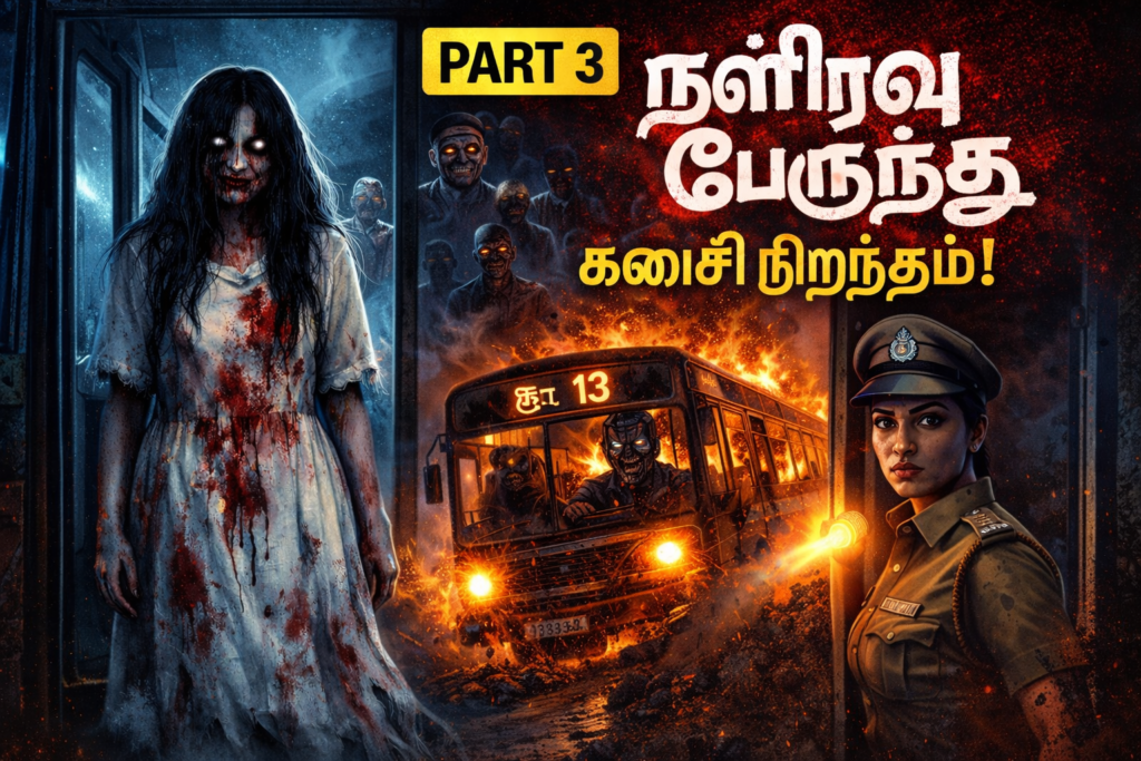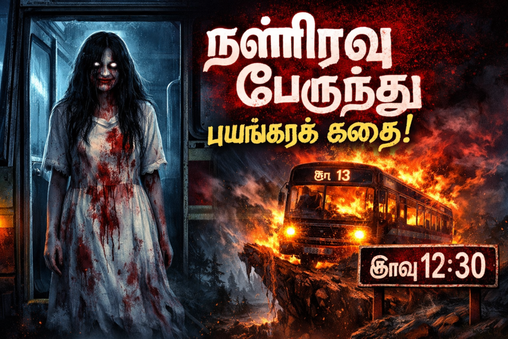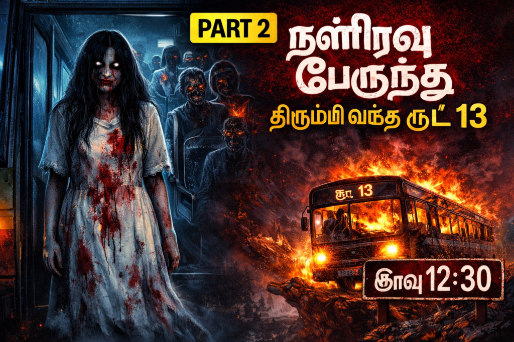 👻 நள்ளிரவு பேருந்து-Part-1 |Tamil ghost stories 👻 நள்ளிரவு பேருந்து-Part-2 |Tamil ghost stories 🚌👻 நள்ளிரவு பேருந்து – Part 3: கடைசி நிறுத்தம் அரவிந்தின் விபத்துக்குப் பிறகுஅந்த மலைப்பாதை முழுமையாக சீல் செய்யப்பட்டது. எந்த வாகனமும் அனுமதி இல்லை.GPS-லும் அந்த ரோடு Delete செய்யப்பட்டு விட்டது. ஆனால்… 📞 ஒரு அவசர அழைப்பு ஒரு இரவுபோலீஸ் கண்ட்ரோல் ரூமுக்கு ஒரு அழைப்பு வந்தது. 📍 Location: Route 13 – KM 7🕒 […]